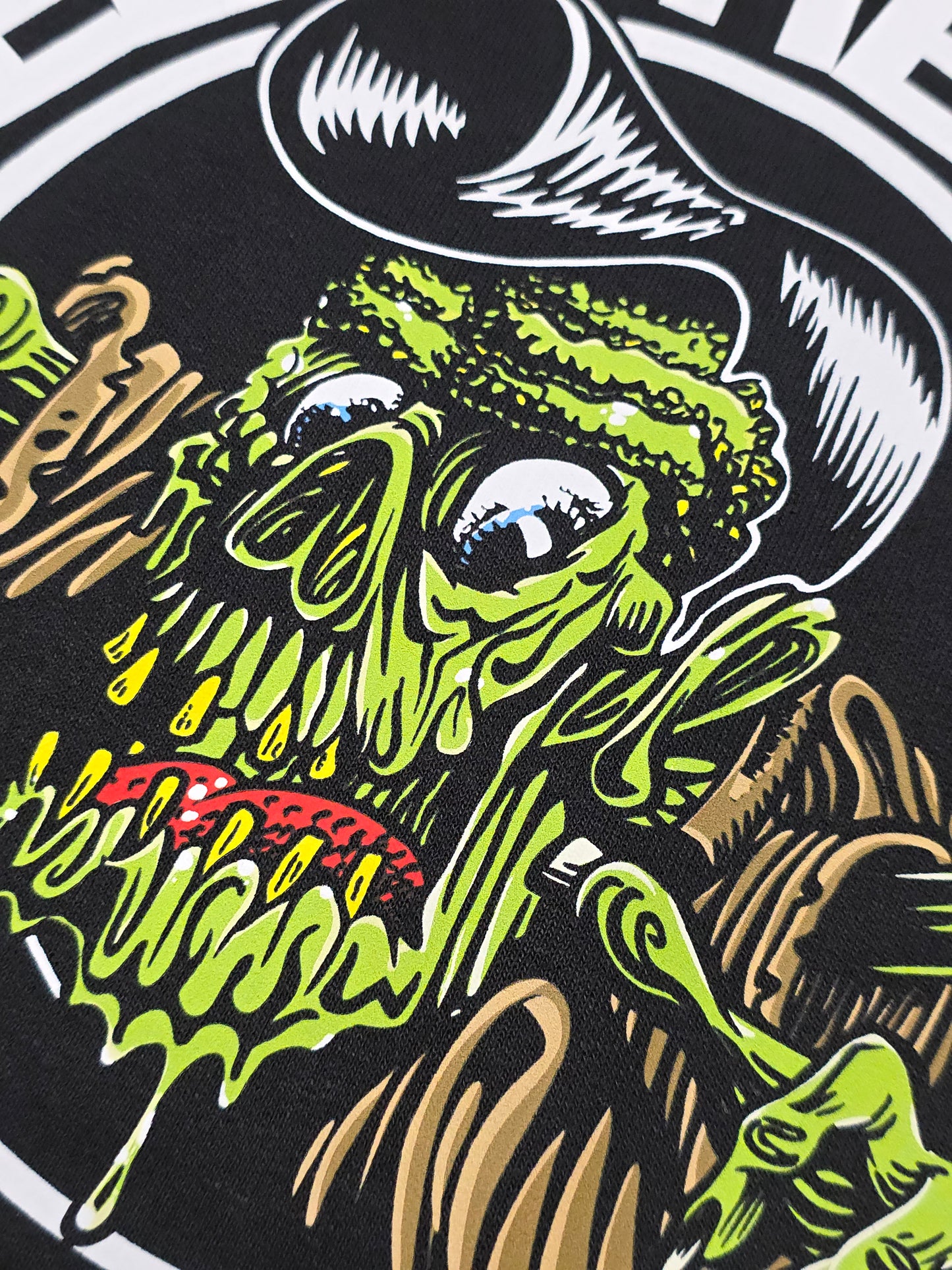 Front and center, you'll encounter the infamous fan favorite KTBF® "Rod Zombie" artwork, a testament to the rebellious spirit of hot rod enthusiasts. This time, Zombie is back from the grave and tearing through the streets, banging gears with an insatiable hunger for speed.
