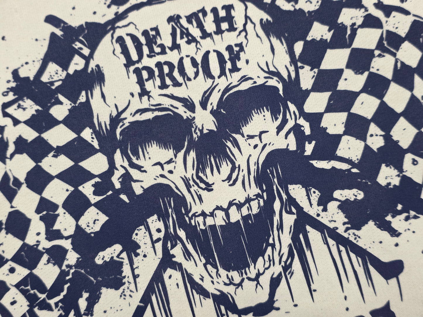 Introducing "DEATH PROOF" BY KTBF® For the asphalt rebels who burn rubber and break rules, the Death Proof hoodie is your go-to gear for flexing fearless attitude. Featuring our gnarly skull and checkered flag design, this hoodie hits hard with street-born style and zero apologies.